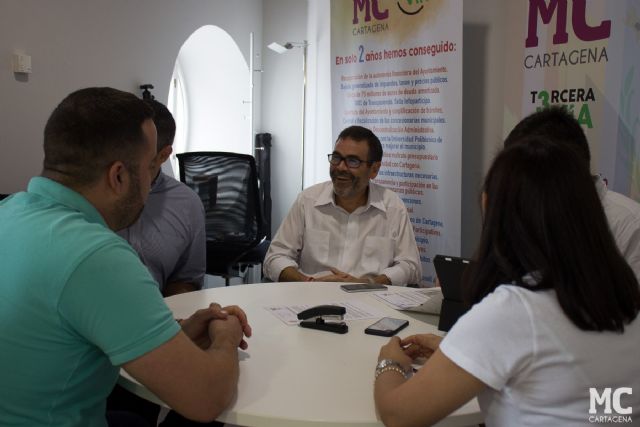 Durante la cita, que se ha celebrado en la sede del Grupo municipal en el Palacio Consistorial, los representantes de MC han transmitido a HOSTECAR algunas de sus iniciativas plenarias para dinamizar el sector turístico en el municipio, como la 'Feria Gastronómica del Campo de Cartagena', propuesta aprobada en la última sesión "para realzar las bonanzas gastronómicas de nuestro entorno, otorgándole además una dimensión comarcal, lo que sin duda despertará expectación y atraerá visitantes", ha comenzado explicando José López.