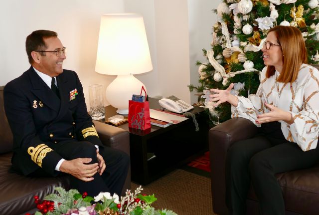 La alcaldesa de Cartagena, Ana Belén Castejón, ha recibido hoy miércoles al hasta ahora almirante jefe de Acción Marítima, Manuel de la Puente, que deja su puesto con motivo de su jubilación.