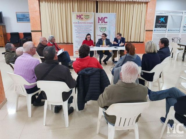 Anoche, el secretario general de MC Cartagena y portavoz de la formación cartagenerista en el Consistorio, José López, y los concejales, Isabel García y Ricardo Segado, mantuvieron una reunión de trabajo con representantes vecinales de Canteras, La Vaguada y Los Popos. La cita tuvo lugar en el local social de Canteras.
