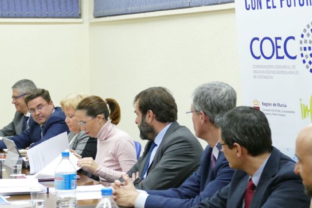 La alcaldesa, Ana Belén Castejón, estuvo presente este miércoles en el Comité Ejecutivo de COEC, Confederación Comarcal de Organizaciones Empresariales de Cartagena, junto al presidente de COEC, Pedro Pablo Hernández y representantes del tejido empresarial de la comarca, con el fin de trasladar a los empresarios la situación de muchos temas de importancia para el municipio.