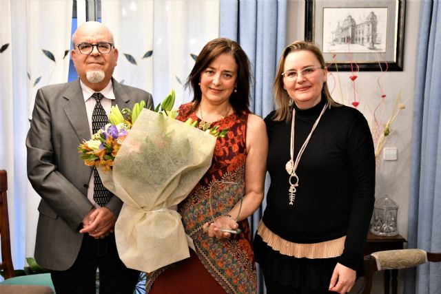 El acto tuvo lugar en la vivienda de la nueva madrina, donde acudió un grupo de directivos, junto a la presidenta, Marién García Boj.