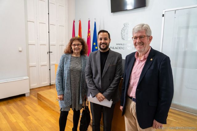 La presentación del acto ha sido realizado por el concejal de Cultura, David Martínez, el presidente de la Asociación de Amigos del Cartagenero Ausente, Domingo Bastida, y la vicepresidenta de la asociación, Janine Alcaraz.