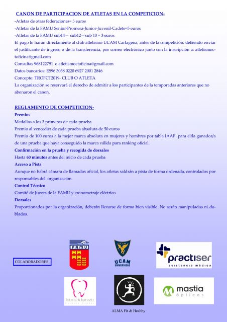 Otra edición más (la trigésimo tercera) de la prueba que apertura la temporada de Aire Libre el "Trofeo de Atletismo Ciudad de Cartagena" que volverá a tener el foco en la Semana Santa de Cartagena, como desde hace más de 30 años el Miércoles Santo.