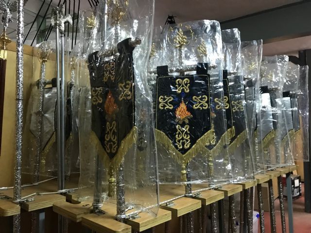 Durante la tarde de hoy viernes, en el almacén de tronos de la Cofradía, las Agrupaciones han limpiado hachotes, preparados galas y ultimado detalles, a la vez que han puesto plásticos en bordados e imágenes. Mañana sábado, de 9:00 a 11:00 horas, se continuará con la tarea.