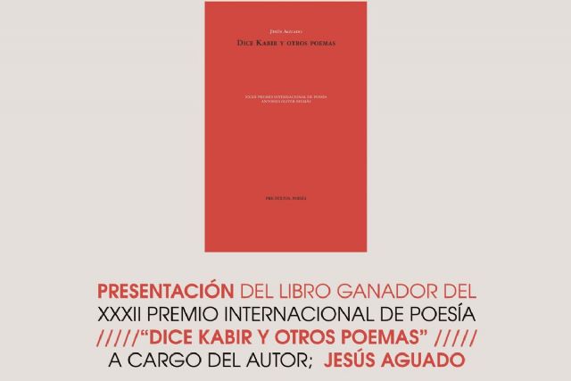 Este jueves 25 de abril, a las 19 horas, en la Sala de Ceremonias del Palacio Consistorial, Jesús Aguado, ganador del XXXII Premio Internacional de Poesía 'Antonio Oliver Belmás', presenta su libro 'Dice Kabir y otros poemas', una distinción que se conoció el pasado 19 de noviembre cuando el jurado falló el premio.