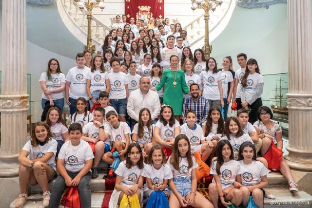 El acto ha dado comienzo a las 11 horas en la sala de ceremonias, donde los jóvenes han sido recibidos por la alcaldesa, Ana Belén Castejón, y los concejales en funciones, David Martínez y Juan Pedro Torralba, del Área de Participación Ciudadana del Ayuntamiento de Cartagena, responsable del proyecto.