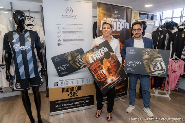 ‘Una historia forjada a fuego’. Ese es el lema que ha escogido el Fútbol Club Cartagena para la campaña de abonos para la temporada 2019/2020 que se ha presentado este martes 9 de julio. La tienda del club en el Estadio Municipal Cartagonova ha sido el escenario elegido para la ocasión. La principal novedad de esta nueva campaña es la creación del abono oro. Por 30 euros más del precio de cualquier abono, los aficionados blanquinegros tendrán todos los partidos del Efesé gratis o descuentos en ropa oficial del club entre otros privilegios. Esta temporada es especial para el club, ya que se cumplen 25 años desde su fundación.