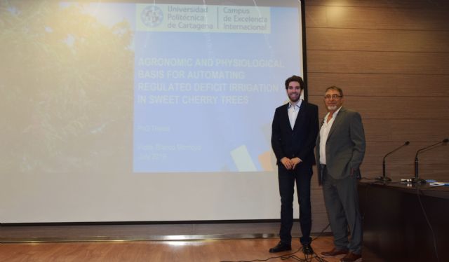 La investigación doctoral de Víctor Blanco Montoya en la Universidad Politécnica de Cartagena (UPCT) ha presentado los primeros resultados de la implantación de estrategias de riego deficitario controlado en cerezos de la Región de Murcia, concluyendo que esta técnica agronómica permite incrementar la productividad del agua sin penalizar la producción del cultivo.