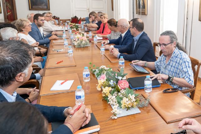 En este encuentro han participado la vicealcaldesa, Noelia Arroyo, y el segundo Teniente de Alcalde, Manuel Padín; los ediles responsables de las concejalías de Seguridad Ciudadana, Juan Pedro Torralba; Infraestructuras, María Casajús; Deportes, Diego Ortega; y Servicios Sociales, Mercedes García; así como el director general de Servicios Sociales de la Comunidad Autónoma, José López; y representantes de las entidades Cruz Roja, Accem, Cepaim, Murcia Acoge, Cáritas, la Hospitalidad Santa Teresa y AlRaso.