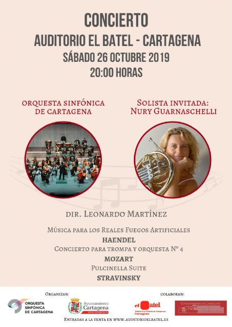 El concierto consistirá en Música para los reales fuegos artificiales de Haendel, Concierto Nº 4 en Mib KV. 495 para trompa y orquesta de Mozart, y Pulcinella Suite de Stravinsky. Actuará junto a la orquesta la solista internacional de trompa, Nury Guarnaschelli, que ha sido solista de la Orquesta de la Radio y Televisión de Viena.