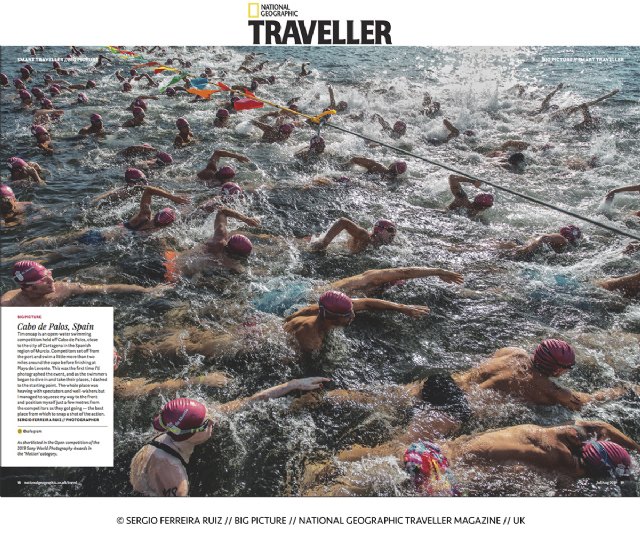 Cabe recordar que en junio de este año la reconocida revista de viajes “National Geographic Traveller” del Reino Unido publicó a doble página una de las fotografías que Sergio Ferreira tomó durante la celebración en Cabo de Palos de la TIMONCAP (travesía a nado al Cabo de Palos), puntuable para la Copa de España. La prueba fue organizada y patrocinada por el Club Natación Máster Murcia y el Ayuntamiento de Cartagena.