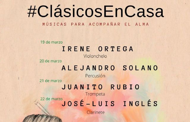 Los artistas locales de Cartagena actuarán en streaming en el ciclo Clásicos en casa, organizado por la Concejalía de Cultura del Ayuntamiento, para entretener y amenizar el tiempo de confinamiento domiciliario como consecuencia del Estado de Alarma por el COVID-19, al verse paralizadas todas las actividades presenciales que se habían programado.