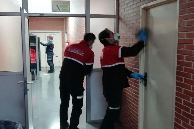 El cuerpo de Bomberos de Cartagena ha reforzado las tareas de desinfección que realiza habitualmente en sus instalaciones del Parque de Seguridad, con motivo de la crisis del coronavirus, para evitar riegos de contagio al ser uno de los servicios que acceden a zonas o tratan con personas que podrían ser portadoras de la enfermedad.