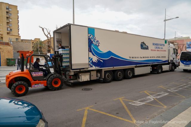 La empresa cartagenera Ricardo Fuentes se ha sumado al Dispositivo especial de Emergencia Social puesto en marcha por el Ayuntamiento de Cartagena con la donación de 2 toneladas de alimentos destinados a las familias del municipio que más lo necesitan que ha entregado hoy lunes 30 de marzo en el pabellón Central de Deportes, convertido en centro logístico, según ha informado la vicealcaldesa y responsable de Atención Social, Noelia Arroyo.