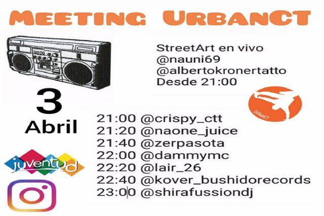 El programa UrbanCt de la Concejalía de Juventud ha programado un Meeting UrbanCT en su cuenta de Instagram @urban.ct, proporcionando así un espacio para que los aficionados al deporte y la cultura urbana puedan mostrar sus obras.