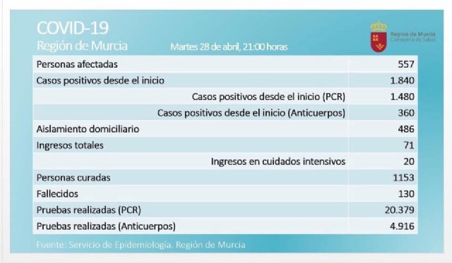 El total de infectados en Murcia desde que ha comenzó la pandemia en la Región son 1840