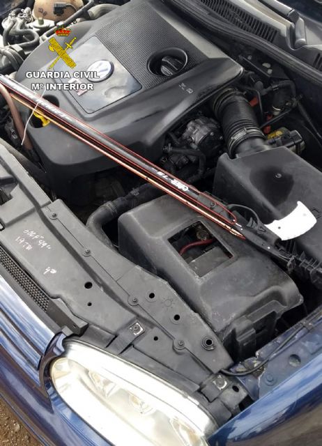 La exhaustiva inspección realizada por los guardias civiles permitió localizar en la zona del motor del turismo perfectamente acoplado, entre el capó y el propulsor, el fusil de pesca submarina supuestamente empleado para la captura ilegal del pulpo.