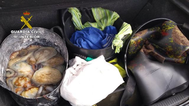 La Guardia Civil de la Región de Murcia, en el marco del 'Plan Anual de Control Integral de Actividades Pesqueras (P.A.C.I.A.P.)', ha desarrollado una investigación en El Gorguel-Cartagena contra la pesca furtiva que ha permitido detectar in fraganti a un submarinista con 22 kilos de pulpo capturado de forma ilícita cometiendo cuatro infracciones a la normativa de pesca y otra más por incumplir el confinamiento establecido en el actual estado de alarma.