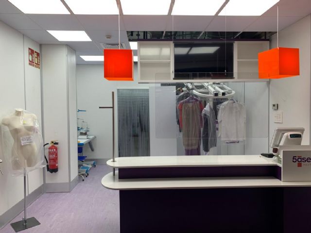 El nuevo local tiene 71 metros cuadrados y alberga 18 máquinas para lavado y secado de la ropa ultrarrápido a disposición de nuestros clientes. También dispone de servicio de planchado y de arreglo de ropa. En palabras del gerente de tintorerías 5 asec en la Región de Murcia, Jose María Martínez Vidal "Esta es una de las tintorerías con la tecnología más avanzada del país usamos la tecnología 5 aqua". Este sistema garantiza el lavado de una manera más eficiente, eficaz y ecológica, sin fricciones ni acción mecánica respetando al máximo las prendas y asegurando su total desinfección.