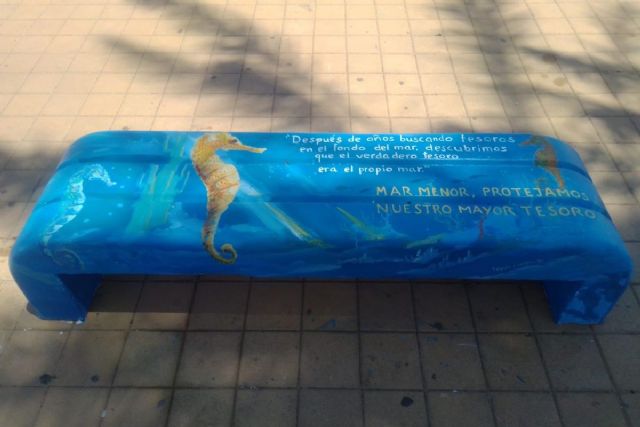 Cabe destacar, el trabajo realizado por un artista cartagenero, Javier Lorente, que “ha pintado a mano los bancos de hormigón con animales marinos y tradiciones de la zona”, ha dicho Casajús que ha especificado “en el caso de La Azohía, se ha pintado una imagen del tradicional arte de pesca de la almadraba, de la Torre de Santa Elena o algunos peces de la zona como el dentón. En la zona del Portús se ha pintado una tortuga marina así como una imagen de sus fiestas, la tradicional jábega pesquera. En Mar de Cristal, una medusa y un caballito de mar con un mensaje que pone en valor nuestro Mar Menor”. Dichas labores continuarán por todos los bancos de los paseos marítimos.