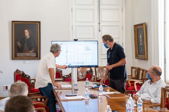 La alcaldesa, Ana Belén Castejón, y la vicealcaldesa, Noelia Arroyo, se han reunido esta mañana con representantes vecinales del Llano del Beal entre los que se encontraban la presidenta de la Junta Vecinal, Carmen Soto; el vicepresidente de la Asociación de Vecinos, Antonio Vidal; y el presidente del AMPA y de la Plataforma de Metales Pesados, Juan Ortuño, a los que han explicado los proyectos para la restauración de la balsa de San Agustín y la construcción de un colector de pluviales.