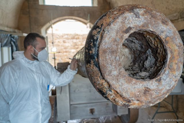 El cañón del Fuerte de Navidad se someterá durante los próximos meses a tratamientos de limpieza, conservación y restauración con los que Cartagena Puerto de Culturas quiere devolver a esta pieza de artillería su esplendor original.