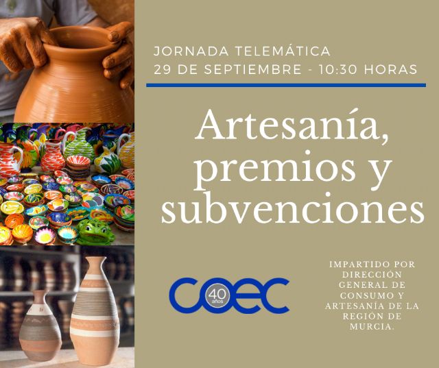 Las subvenciones para artesanos y asociaciones artesanas, y las reclamaciones de consumo y obligaciones de las empresas que ofrecen sus productos y /o servicios a través de Internet a los consumidores, centrarán las dos próximas jornadas virtuales organizadas por la Confederación Comarcal de Organizaciones Empresariales del Campo de Cartagena.