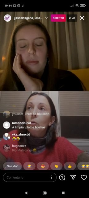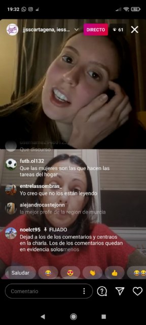 Durante dicho directo tanto la compañera de JSCT como la directora del centro, Ángeles Martínez Sánchez, han sufrido agresiones machistas y de carácter sexista: “¿Por qué no estáis limpiando platos?” “Una mujer comentando, momento inédito” “Viva Franco” “Creo que no han hecho la cena, no sé porque están tardando” “mujeres al paredón” “es que una vez que os compra uno lavavajillas ya os creéis algo” “hombres>mujeres” “las 43 de este año no le importan a nadie” “Acho, pues yo a la de arriba (en referencia a la compañera de juventudes) le daba” “vosotras aquí hablando de tonterías, esto con Franco no pasaba” “a la de abajo (en referencia a la directora) me la follaría en su despacho un día de instituto” “Estos comentarios demuestran que aún queda mucho por lo que luchar.