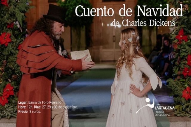 En menos de 48 horas Cartagena Puerto de Culturas ha agotado las entradas de los seis pases programados para poder disfrutar este año de una Navidad de Cuento. Es por ese motivo, ante la alta demanda del público y la buena acogida, se ha programado un pase especial de Cuento de Navidad de Charles Dickens en el Barrio del Foro Romano el lunes 28 de diciembre a las 12:00 horas.