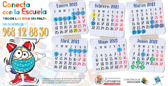 Así, en la ciudad de Cartagena las vacaciones de Navidad comenzarán el 24 de diciembre y se extenderán hasta el día 6 de enero del 2021, ambos inclusive. Las vacaciones de Semana Santa tendrán lugar del 29 de marzo al 2 de abril del 2021.