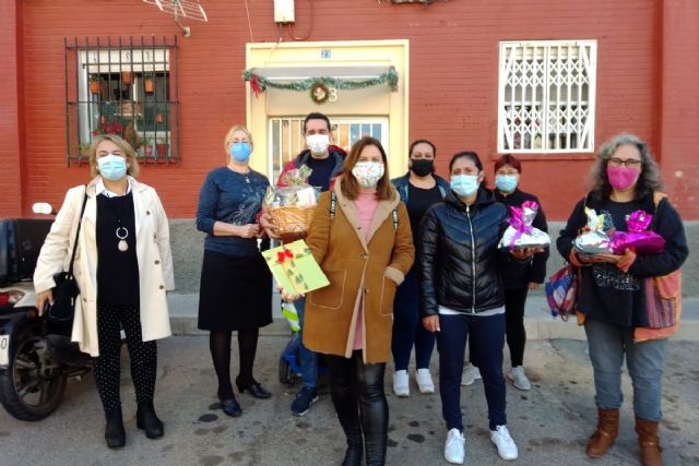 La directora de Servicios Sociales, Lucía Hernández, y la responsable de Proyecto Abraham en Cartagena, Toñi Villarino, hicieron entrega este martes 22 de diciembre, de una placa y unos dulces navideños a los vecinos ganadores.