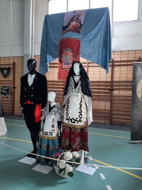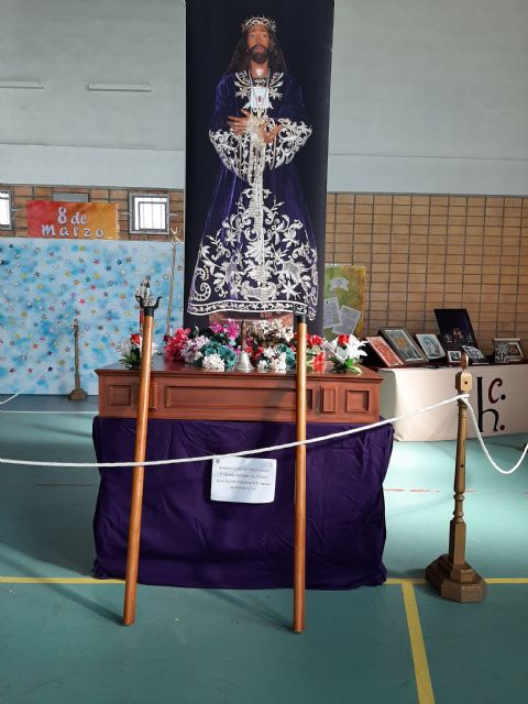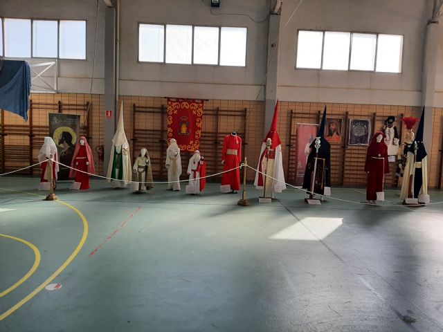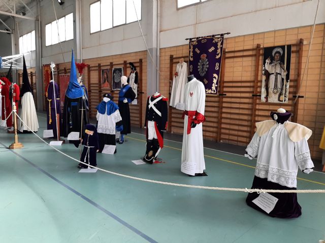 El gimnasio del centro escolar se ha convertido esta semana en un museo cofrade en el que disfrutar de vestuarios de penitentes, monaguillos, hebreos, portapasos y nazarenos, además de un traje con mantilla de dama -“manola”- y tres trajes típicos cartageneros (utilizados en la tarde del Viernes de Dolores para la ofrenda a la patrona, la Virgen de la Caridad).