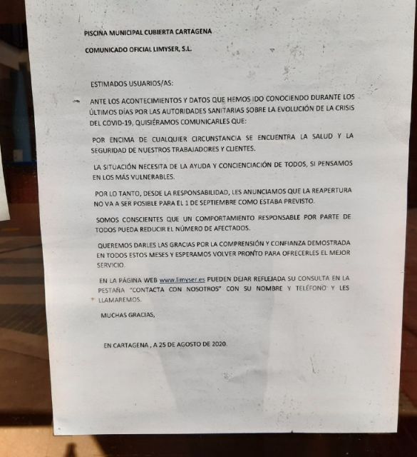 Al hilo de lo expuesto, el concejal cartagenerista ha añadido que "en el próximo pleno preguntaremos a Arroyo para que detalle el tipo de acuerdo al que ha llegado con las concesionarias para pactar el cierre de las piscinas durante tanto tiempo. ¿Cuánto nos costará a los cartageneros?"