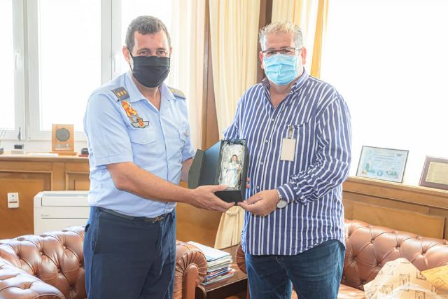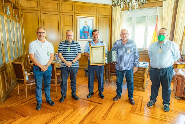 El presidente de la Agrupación de San Juan Evangelista, Pedro Emilio Conesa Martínez, junto a varios hermanos de la misma, han visitado al Coronel Director de la Academia General del Aire de San Javier, Manuel de la Chica Camúñez, para entregarle el título de Hermano de Honor de la Agrupación.