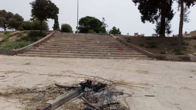 Un lugar privilegiado y ajeno a la sociedad civilizada. El parque Escipión de Los Barreros destaca por la dejadez más absoluta por parte de las autoridades municipales. En nada quedó el compromiso del concejal de Vía Pública y Servicios Urbanos, Juan Pedro Torralba, de que el Ayuntamiento de Cartagena asumiría la remodelación del espacio verde con los presupuestos del año pasado. El fin del toque de queda ha acentuado aún más la desidia del entorno. El lugar amanece ahora a diario con restos de botellones por doquier y hasta de hogueras que realizan algunos jóvenes con la impunidad que otorga un área en abandono sistemático. La arboleda continúa además desde hace meses con escombros que nadie retira pese a las continuas quejas por parte de la asociación de vecinos del barrio.