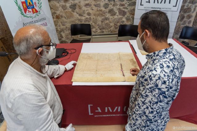 El Archivo Municipal de Cartagena rescata este agosto un nuevo documento y un vídeo del mes. El texto trata el traslado de carta real de los Reyes Católicos revocando la sentencia de mosén Juan Cabrero, corregidor de Murcia, Lorca y Cartagena, sobre el pleito del Mar Menor entre Murcia y Cartagena, y el arrendamiento de la dicha albufera hecho por el concejo de Murcia a Sancho de Arróniz.