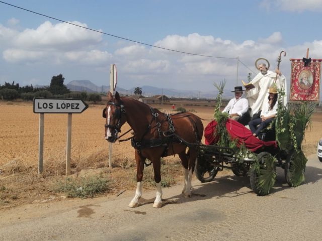 Así, una carreta tirada por un caballo ha partido en rogativa a primera hora de la mañana de la parroquia de San Ginés en dirección al monasterio, dónde tiene previsto llegar a las 14.00 horas. La misma está dirigida únicamente por dos carreteros y el propio hermano mayor, Andrés García. El santo hará una parada a las 12.30 horas en la localidad cartagenera de El Algar, donde hará una ofrenda a la patrona en el templo de la patrona de este lugar, la Virgen de los Llanos. García expone que, al igual que el año pasado, debido a la situación sanitaria, la popular romería se ha sustituido por esta rogativa.