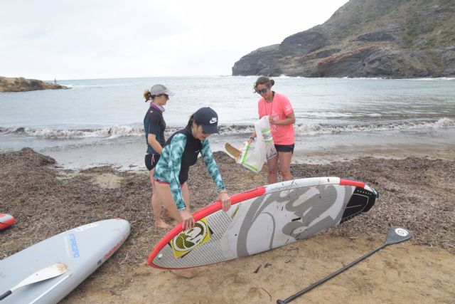 Un instrumento ideado por la Universidad de Barcelona para ser acoplado en tablas de paddle-surf ha facilitado la recogida de muestras de microplásticos en la superficie del mar, replicando en Cartagena los ensayos del proyecto Surfing for Science. "Haremos muestreos estacionales de los microplásticos para conocer las variaciones en función de las estaciones y las corrientes", explica Amaia Gómez, del Club Náutico de Cabo de Palos y de la asociación medioambiental Procabo.