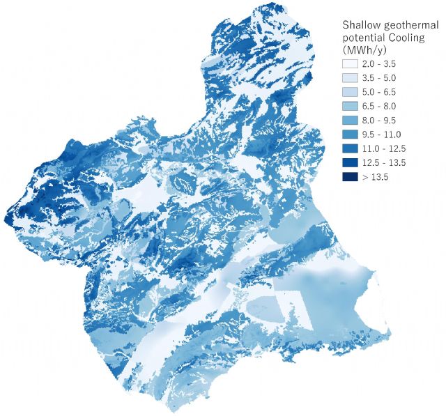 Las investigadoras han realizado un mapa que clasifica la Región de Murcia en grados de idoneidad en función dónde se obtienen los mayores beneficios económicos y medioambientales que se obtendrían con la explotación de esta energía renovable que aprovecha la estabilidad de la temperatura del subsuelo para bombear aire caliente en invierno y aire frío en verano.