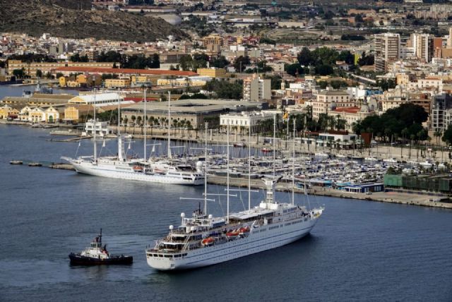Los veleros Wind Surf y Wind Star, de la naviera Windstar Cruises, han atracado esta mañana en Cartagena
