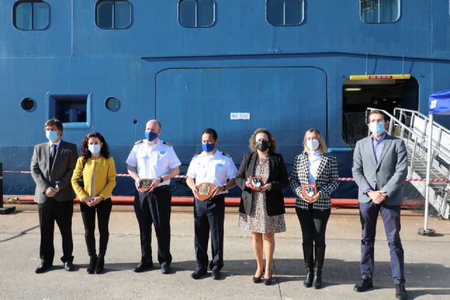 La presidenta de la Autoridad Portuaria, Yolanda Muñoz, ha destacado que "hoy recibimos el último de un total de 11 buques que han atracado por primera vez en el puerto de Cartagena en este año 2021.Esta cifra consolida a Cartagena un destino preferente en el turismo de cruceros a nivel nacional, como el octavo puerto español", en la recepción de bienvenida del capitán del buque Borealis, donde ha estado acompañada de la concejal de Turismo, Cristina Pérez, de la consignataria Erhardt Mediterránea con Sergio Conesa, y el jefe de Desarrollo de Negocio de la APC, Fernando Muñoz.