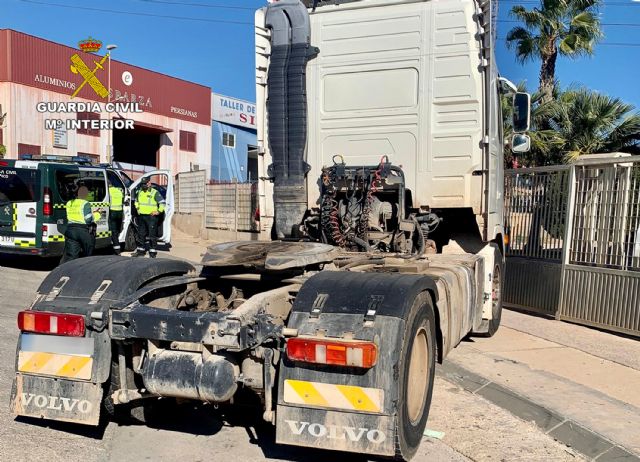 El camión implicado en los hechos quedó inmovilizado a disposición de la autoridad judicial como instrumento del delito en una zona de estacionamiento del polígono industrial Cabezo Beaza de Cartagena.