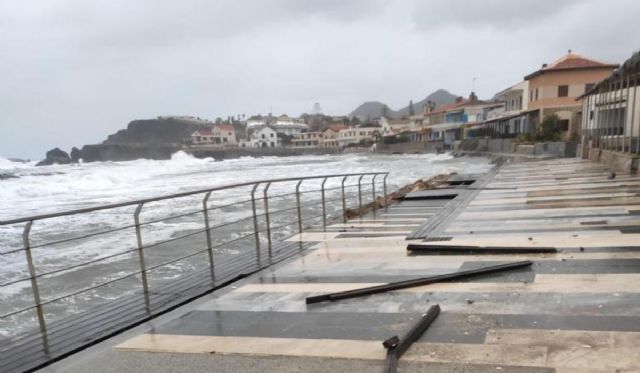 El temporal de viento y oleaje de gran altura que azota estos días la costa de Cartagena está causando graves desperfectos en las playas, paseo marítimo y arbolado de la zona, donde el agua ha saltado hacia el paseo marítimo de Cabo de Palos y ha alcanzado las calles del pueblo, y está dejando graves pérdidas de arena en las playas, aunque no será claramente visible hasta que no amaine el viento.