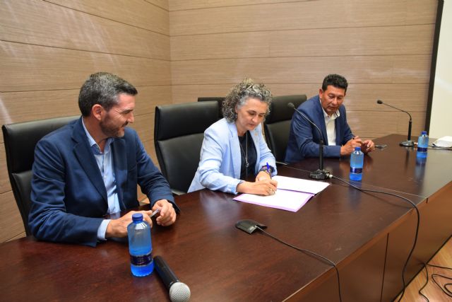 La rectora de la Politécnica, Beatriz Miguel, el consejero de Agricultura, Agua y Medio Ambiente, Antonio Luengo, y el presidente de la Comunidad de Regantes del Campo de Cartagena, Manuel Martínez, han firmado el nuevo convenio y asistido a jornada explicativa, realizada en la Escuela de Agrónomos de la UPCT, de los trabajos realizados hasta ahora para la implantación de una fertirrigación sostenible. Antes del inicio del acto se ha guardado un minuto de silencio por el investigador recientemente fallecido Bernardo Martín.