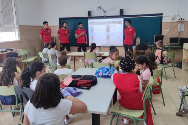 Todos los alumnos de infantil y primaria del colegio, llegando a los 160, junto al profesorado, han compartido y participado en la actividad que ha tenido una primera parte donde los escolares han tenido un encuentro en el aula con los futbolistas del equipo cartagenero.