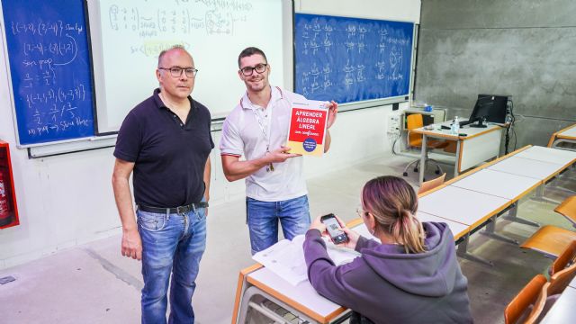 Lo mejor del papel, un soporte físico con toda la información ordenada, y lo más útil de las nuevas tecnologías: vídeos explicativos y un chat para resolver dudas. El nuevo libro del profesor de la UPCT Juan Medina combina ambos formatos para ayudar a quienes estudian álgebra lineal. “Quien no aprende es porque no quiere”, afirma el docente de la Politécnica de Cartagena.