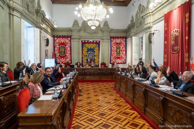 La moción, que ha incluido las enmiendas de adicción del grupo Popular y Vox, ha sido aprobada con los votos a favor del Gobierno municipal y Vox, la abstención de MC Cartagena y el voto en contra de Unidas Podemos Izquierda Unida-Verdes Equo.