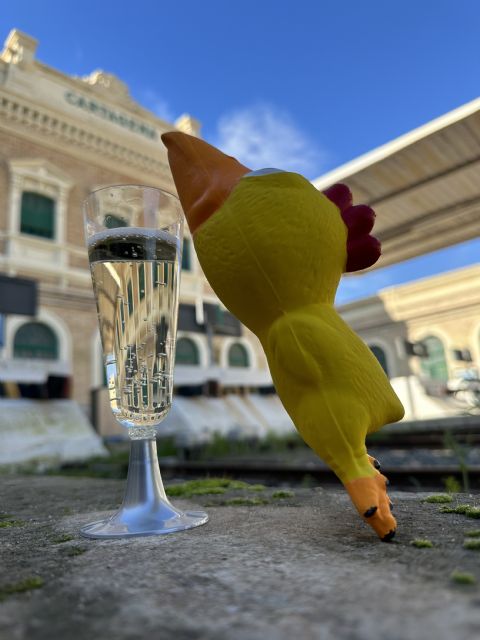 Esta mañana concejales y afiliados de MC Cartagena se han acercado hasta las inmediaciones de la estación de tren de la ciudad, donde han brindado con los vecinos por la tan deseada llegada del AVE a Cartagena, tras innumerables años de espera.