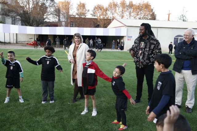 La alcaldesa ha destacado que “seguimos avanzando según el calendario previsto para transformar los campos de fútbol municipales y terminar definitivamente con la tierra en toda Cartagena”.