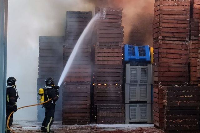 Más aparatoso resultó el incendio registrado sobre las cinco de la tarde en una nave de palés en La Madalena.